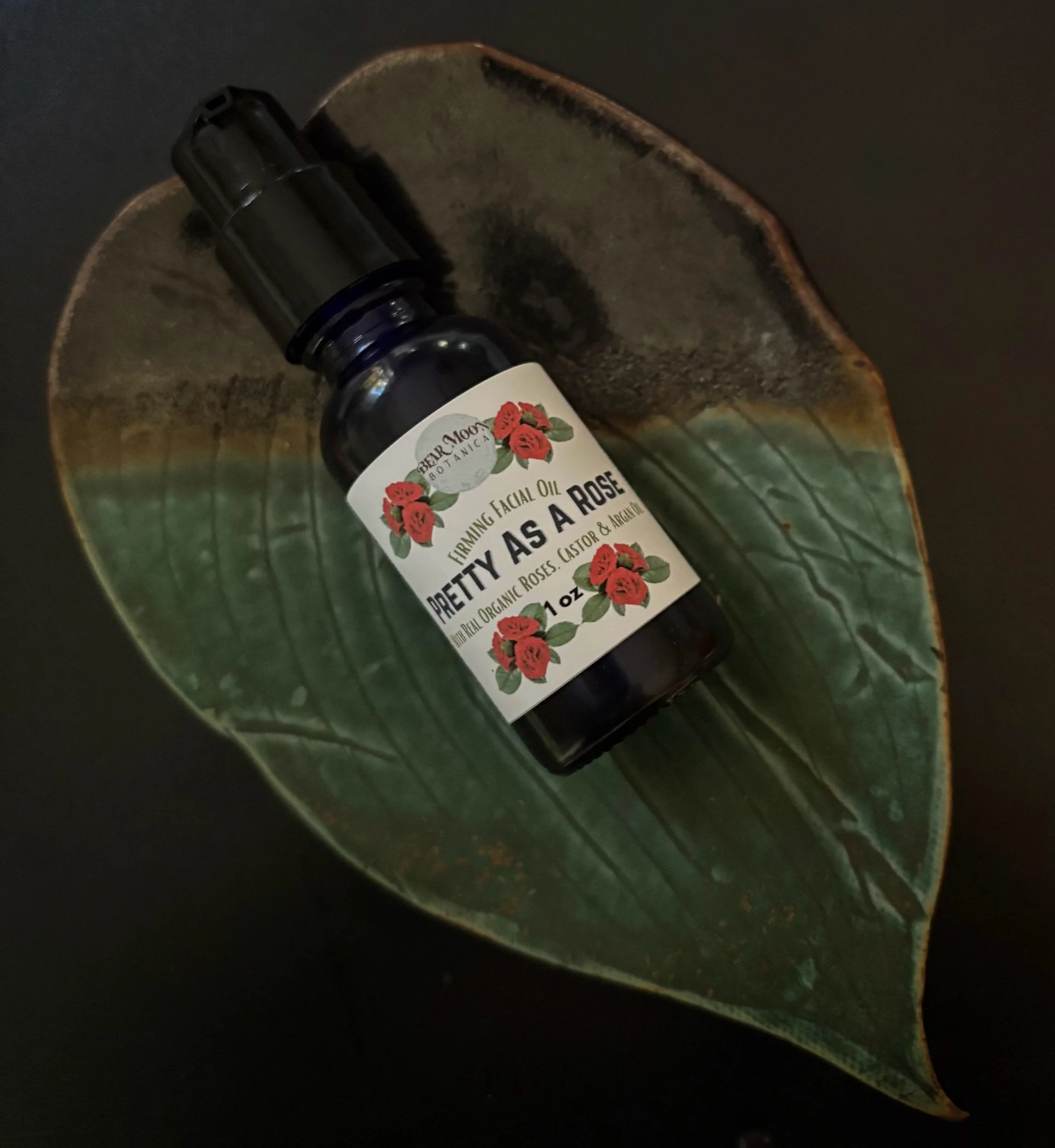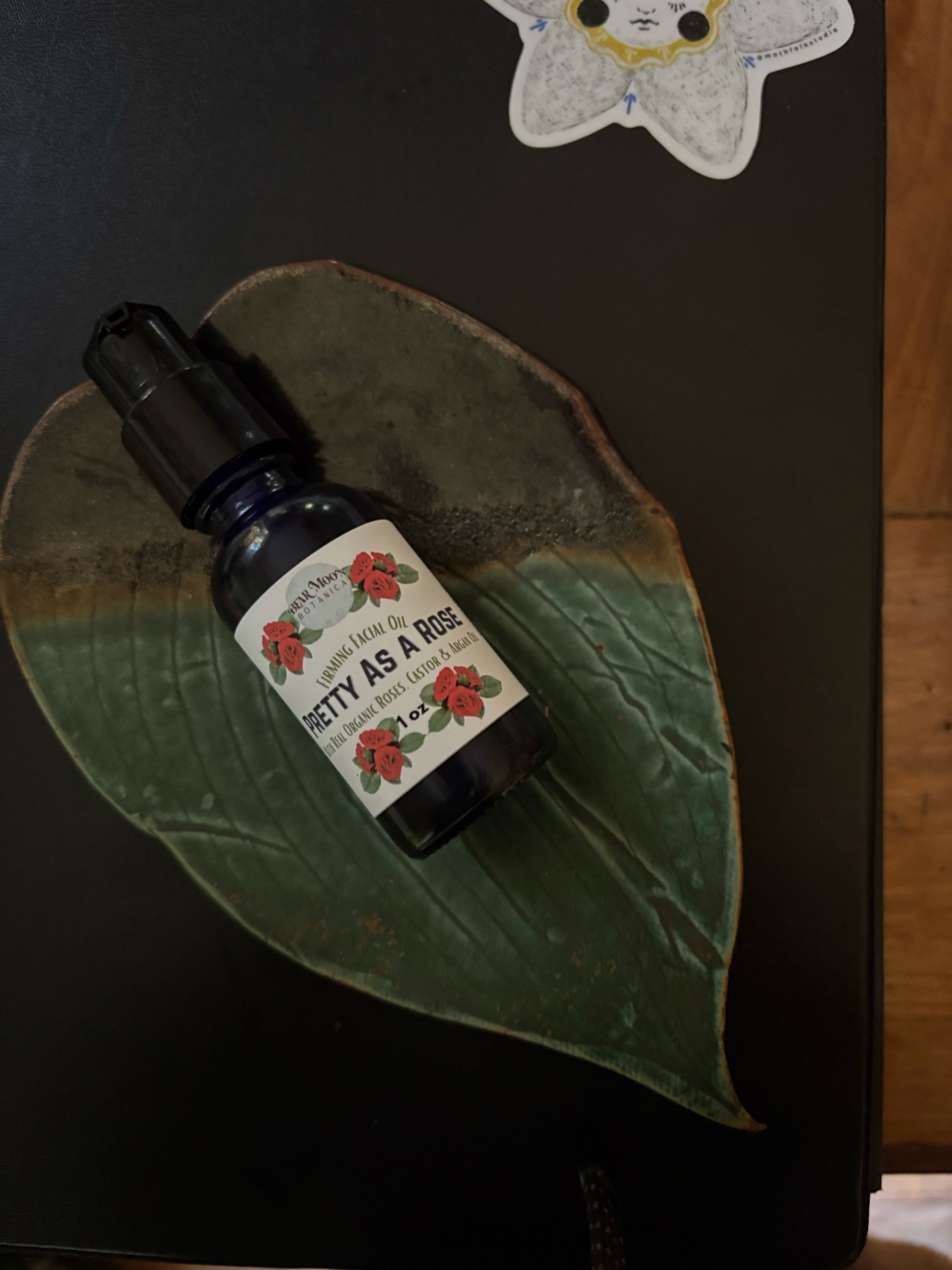 A beautiful and potent infusion of Olive leaf and Osmanthus flower (bitter olive) in Grape seed oil blended with unheated Arbequina Olive oil from Saratoga Olive Oil Co and cold pressed Moroccan Argan oil. The beautiful and earthy scent comes from the infused plant material alone. This light, antioxidant rich, nourishing & fast absorbing moisturizer makes me feel super pretty, and is a best seller at the markets I attend, and it flies off the shelves at the downtown Burlington Saratoga Olive Oil Co Shop!